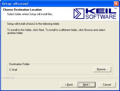 当然用户点击Browse 选择适合自己的安装目录,如D:\Keil C51。