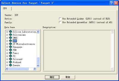 2.为工程选择目标器件(例如该开发般可以选择SST的SST89E564RD);