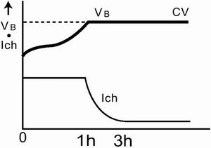 每次充电操作根据电池的化学成分依序加电压和电流。因此,充电器和充电算法满足电池化学成分的不同要求。电池充电经常遇到的术语是:用于NiCl 和NiMH电池的恒流(CC)和用于锂离子和锂聚合物电池的恒流/恒压(CC/CV)(见图1-6)。