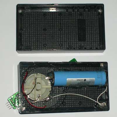 (图中兰色的圆柱体是3.6V的拆机充电池,本站也是不配的,大家可以用手机电池代替。)