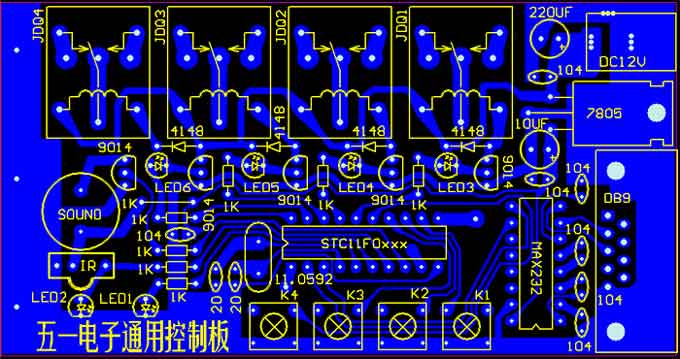 下面是PCB布线图(电路板设计为了多种用途,有些焊盘本板是空着不用的):