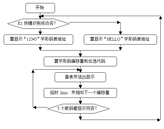 动态接口采用各数码管循环轮流显示的方法,当循环显示频率较高时,利用人眼的暂留特性,看不出闪烁显示现象,这种显示需要一个接口完成字形码的输出(字形选择),另一接口完成各数码管的轮流点亮(数位选择)。